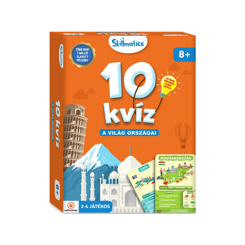 Készen állsz egy világkörüli utazásra? A „10 Kvíz – A világ országai” segítségével felfedezheted a Föld legizgalmasabb országait! Kérdezz okosan, fedezd fel a kultúrákat, földrajzi érdekességeket, és nyerj meg minél több kártyát! Játssz családdal, barátokkal, vagy akár útközben is, és légy a földrajz bajnoka!