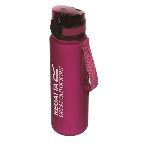 Kulacs - 0,6 l űrtartalom, szíj, fedett szívóka és kinyitódás elleni védelem, BPA-mentes és egy kézzel nyitható, anyaga tritan, alkalmas fitnesshez, magassága 25 cm, átmérője 10 cm, rózsaszín kivitel A remek ivókulacs Regatta 0,6 l térfogattal rendelkezik, illetve tritánból gyártották, ami ellenálló, könnyű és nem szívja magába a szagokat. BPA-mentes anyagösszetétele nem engedi nem kívánt anyagok