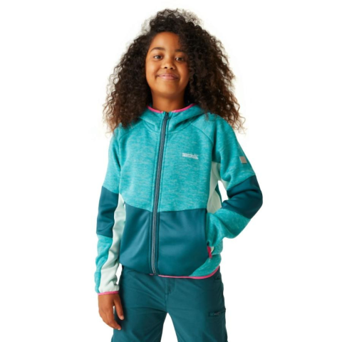 Gyerek polár felső 240 g/m2 újrahasznosított 85% poliészter/13% viszkóz/2% elasztán polár Extol Stretch panelbetétek - 90% poliészter/10% elasztán fix kapucni rugalmas szegélyek 2 cipzáras alsó zseb Fényvisszaverő díszítés Regatta Dissolver VIII Gyere
