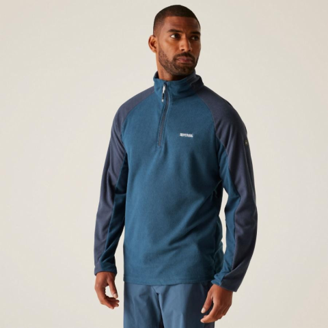 férfi polár pulóver 180g/m2 súlyú 100% poliészter Symmetry polár anyag Egy oldalán sima, bolyhosodás mentes, másik oldalán bolyhosított Cipzáros nyak Rugalmas szélû mandzsetta Regatta Elson II férfi polár pulóver Lásd a terméken WQ5 kék férfi polár pu