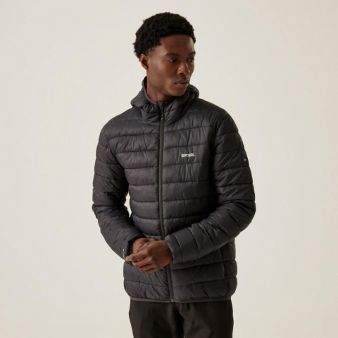 Férfi steppelt kabát Könnyû 20d poliamid anyag Tartós vízlepergető felülettel Feather Free - prémium szintetikus pehelyszigetelés 2 cipzáras alsó zseb fix kapucni rugalmas szegélyek Regatta Hooded Marizion Férfi steppelt kabát Lásd a terméken 08N szürk