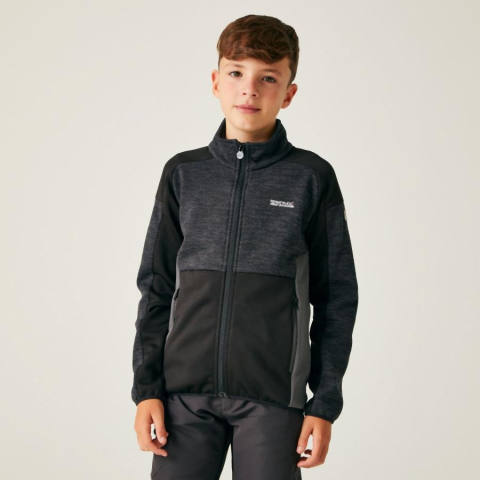Gyerek polár felső 210 g-os újrahasznosított 100% poliészter kéttónusú polár Extol Stretch panelbetétek - 90% poliészter/10% elasztán rugalmas szegélyek 2 cipzáras alsó zseb Regatta Jn Highton FZ III Gyerek polár felsõ Lásd a terméken 087 fekete Gyere