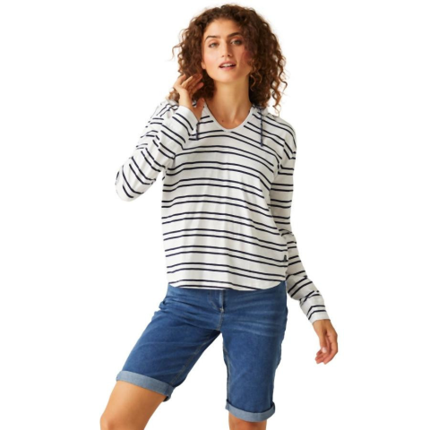 Női pamut felső 155 gsm Coolweave 100% pamut csíkos jersey anyag Zsinóros kapucni Regatta Minerve Nõi pamut felsõ Lásd a terméken 2A7 kék Női pamut felső 155 gsm Coolweave 100% pamut csíkos jersey anyag Zsinóros kapucni