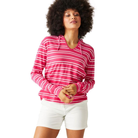Női pamut felső 155 gsm Coolweave 100% pamut csíkos jersey anyag Zsinóros kapucni Regatta Minerve Nõi pamut felsõ Lásd a terméken 35C rózsaszín/korall/pink Női pamut felső 155 gsm Coolweave 100% pamut csíkos jersey anyag Zsinóros kapucni