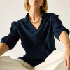 Női blúz Prémium női könnyû nyári blúz ? broderie és pamut-len kombináció, laza szabás Ez a női nyári blúz 100% pamut broderie anyagból készült, 120 g/m? súlyban, amelyet 90% pamut / 10% len fonalfestett csíkos, könnyû anyag egészít ki 90 g/m? kivitelben.