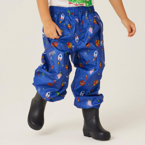 gyerek esőnadrág 5.000 mm Isolite - Könnyû, 5.000 mm-ig vízálló és lélegző poliamid anyag Lélegző érték: 5.000g/m2/nap Tartós víztaszító felület Ragasztott varrások Teljes felületén mintás Gumírozott derékrész Két oldal zseb Elcsomagolható Regatta Pepp