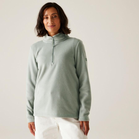 Női polár pulóver 220gsm, 88% újrahasznosított poliészter / 12% pamut csíkos polár 1/4 hosszú cipzáros kialakítás Újrahasznosított tartalommal készült Regatta Solenne II Nõi polár pulóver Lásd a terméken R6B zöld Női polár pulóver 220gsm, 88% újrahasz