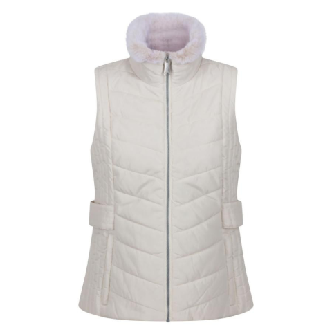 Női mellény 100% poliészter magas fényû anyag Tartós vízlepergető felület Újrahasznosított szintetikus Warmloft szigetelő töltet 100% poliészter taft bélés bolyhos mûszőrme a belső gallérban 2 cipzáras alsó zseb Regatta Wildrose B/W Nõi mellény Lásd a