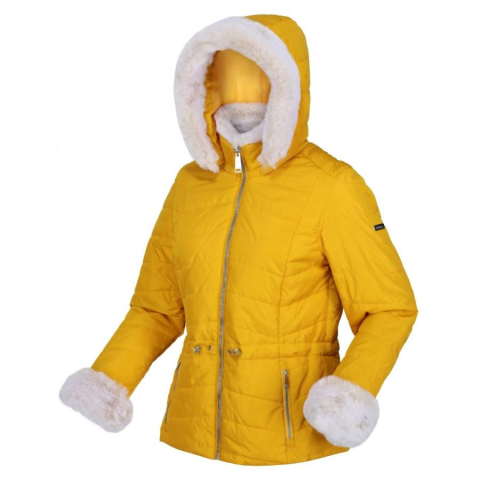 női télikabát 100% poliészter vízlepergető magas fényû anyag Thermoguard szigetelés 100% poliészter taft bélés Állítható levehető kapucni mûszőrme szegéllyel Felhajtható mandzsetta szőrme díszítéssel Húzózsinórral állítható derékrész 2 cipzáras alsó, mel