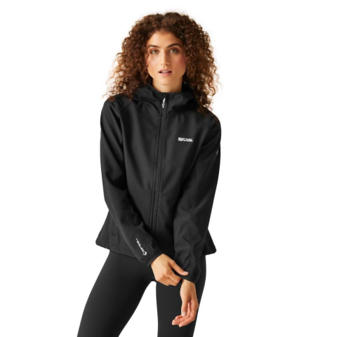 női softshell felső Meleg bélésû, rugalmas 96% poliészter 4% elasztán softshell anyag Tartós víztaszító felület Szélálló Nem-levehető kapucni Két cipzáros zseb az alján Rugalmas szélû kapucni és mandzsetta Állítható, húzózsinóros alsó szegély Regatta W