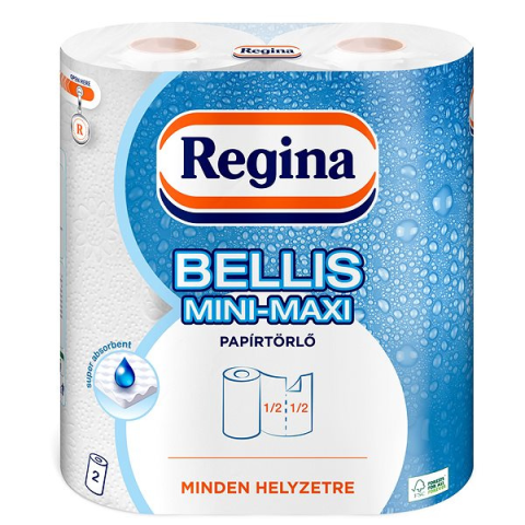 Papírtörlő - a tekercs hossza 11,5 m, átmérője 17 cm, lapok méretei 22,5 × 11,5 cm (szé × h), 100 lapból áll, 2 tekercs a csomagban Egy ilyen REGINA Bellis, konyhai (2 darab) termék legfontosabb paraméterei Egy ilyen REGINA papírtörlő nagyszerűen használható gyors kézszárításhoz, kiömlött folyadék letörléséhez és mindennapi takarí