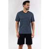 A Marek férfi pizsama kiváló minőségű, 100%-os pamutból készült, kényelmes szabású és színes mintájú. A pizsama 100%-os pamutból készült. Légáteresztő és finom tapintású. A pizsamafelső rövid ujú és V kivágással ellátott. Mellzsebbel díszített. Sötét szürke színű és színes mintájú. A pizsamaalsó fekete színű. Derekában rugalmas gumi található. A nadrágszárak röviden szabottak.