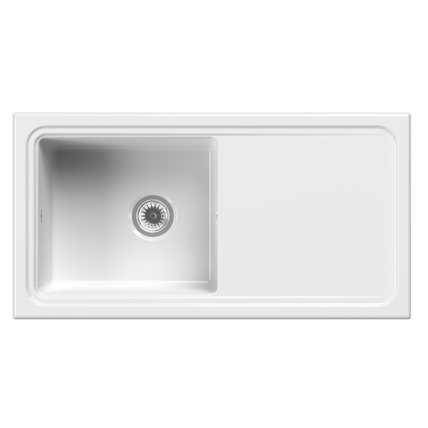 Reginox Modena II kerámiamosogató csepegtetővel. Az 1000.0 Hollandiában készül, kiváló minőségű anyagokból. A mosogató a konyhája dísze lesz, és minden elvárásnak megfelel. A mosogató frissítésen esett át, ezért a névben a kettes szám. A mosogató a stílus és a funkcionalitás tökéletes kombinációja.