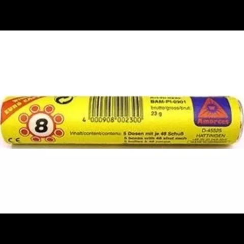 Sajnos az akciófilmekkel ellentétben még a játékpuskák sem tudnak végtelen számút lőni. Ezért nagy szerencse, hogy a rózsapatronnal működő játékfegyverekhez lehet külön patronokat rendelni - így sosem ér véget a csata.A játékfegyver elsütésekor a patron nagyot pukkan, de ezen kívül ártalmatlan.Ebben a csomagban 30 darab 8 lövetű rózsapatron található. 12 lövetű pisztolyokban, puskákban használható.Csomagolás mérete: 13 x 2,5 x 2,5 cm