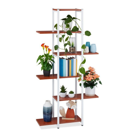 Teljes Relax 6 polcos virágtartó állvány fém keretes növénytartó fehér-barna virágpolc termékleírás