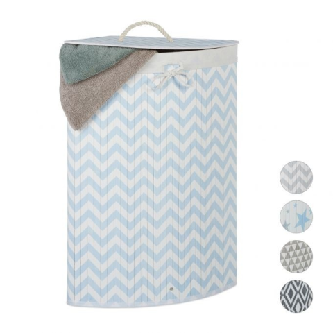 Relax Bambusz sarok szennyeskosár kék cikk-cakk mintával 60 literes bútor termékleírás