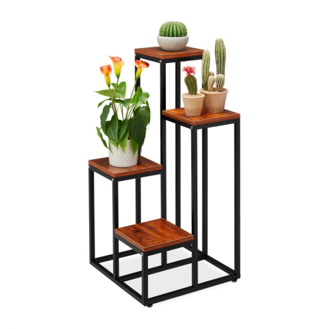 1 kép Relax Beltéri virágállvány fekete-barna viráglépcső 4 polccal virágtartó állvány