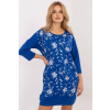 Női Hétköznapi Ruha Relevance MM-203474. Színe: Kék Stílusos és kényelmes tréningruha, amely ideális a mindennapi viselethez. Egyenes szabása garantálja a kényelmet és a mozgás szabadságát, így tökéletes választás alkalmi kirándulásokhoz vagy otthoni laza pillanatokhoz. Az elülső részen elhelyezett finom virágmintás minta nőies jelleget kölcsönöz a ruhának. Puha és rugalmas pamut/elasztán keverék a kényelmes tapintás