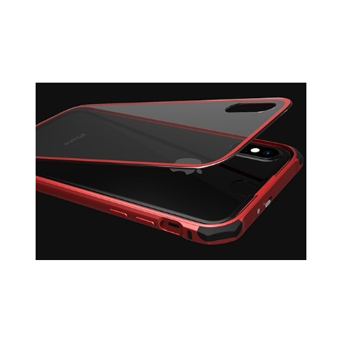 1 kép REMAX Telefontok, iPhone X / XS hátlaptok, fémkeretes, üveghátlapos, piros, Remax RM-1658