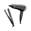 Ajándékozd a nagyszerű haj élményét, vagy akár magadat is kényeztetheted a Style Essentials ajándékcsomaggal. A hajszárító és hajsimító együttes használatával ragyogó, egészségesebbnek látszó frizurát érhetsz el. A hajszárító nagy teljesítményű, 2000 W-os motorja gyors hajszárítást tesz lehetővé, az ionos kerámiarács pedig egyenletes hőeloszlást és antisztatikus hatást biztosít a sima végeredmény érdekében. A hajsimító gyors felmelegítési funkc