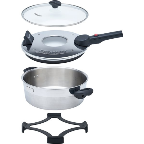 Remoska - funkciói hagyományos főzés, űrtartalma 4 l, a felszereltség része mosogatógépben mosható tartozékok, termosztát, hőmérséklet szabályozás, rozsdamentes acél belső felület, 580 W teljesítmény, fedő a csomag része, mérete 53 × 32 × 19 cm (Sz×H×Ma), tömege 4,4 kg, ezüst kivitel Remoska D52F/10 4l Dua Glass — Multifunkcionális konyhai segítőA Remoska D52F/10 4l Dua Glass elektromos főzőedény megkönnyíti a különböző ételek elkészítését a leve