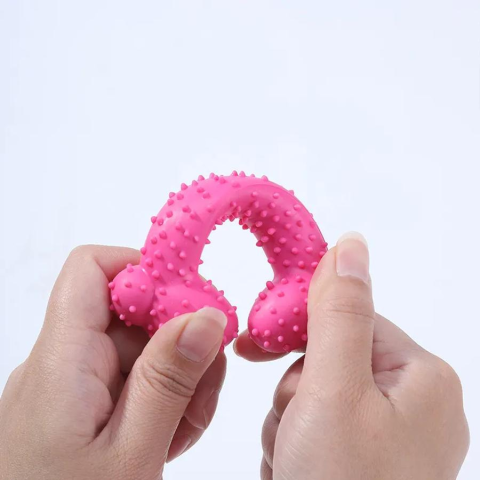 Rena Harapásálló csont alakú rágójáték TPR 11cm*4cm Rózsaszín bordázott játék kutyáknak 1 kép