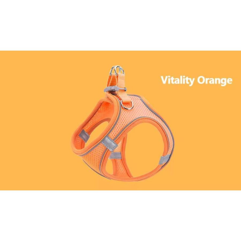 1 kép Rena Légáteresztős hám, fényvisszaverő csíkkal , pórázkészlettel "L" NARANCSSÁRGA