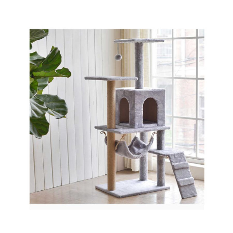 A 125 cm magas, többszintes macskabútor tökéletes választás minden cicatulajdonos számára, aki szeretné házi kedvencének a lehető legkényelmesebb és legszórakoztatóbb környezetet biztosítani. A plüss borítású fekhelyek, strapabíró szizál kaparófák és különböző játékos elemek garantálják, hogy cicád mindig találjon elfoglaltságot, legyen szó pihenésről, mászásról vagy kaparásról.