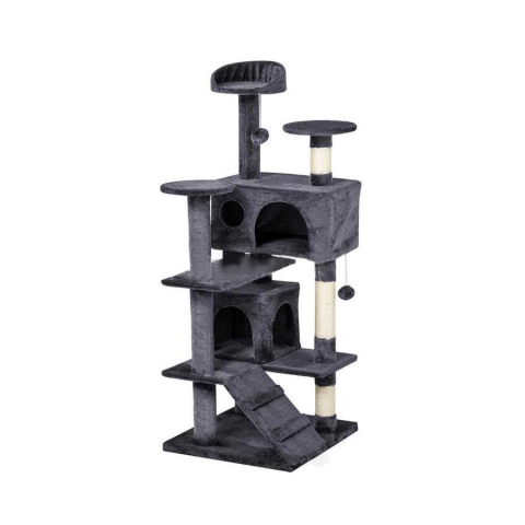 A 130 cm magas, több szintes macskabútor tökéletes választás minden cica számára, aki szeret mászni, kaparni és pihenni. Prémium anyagokból készült, így nemcsak kényelmes, hanem tartós is. A szürke plüssborítás puha és meleg, a szizál kaparóoszlopok pedig védik a bútorokat a karmolásoktól.