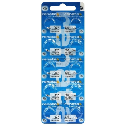 Prémium minőségű Renata 337 típusú ezüstoxid óraelem Svájcból.A képen 1 csomag látható, mely 10 db elemet tartalmaz. Áraink darab árak, nem csomag.