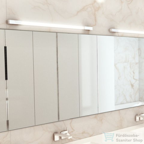 Falra szerelhető, lineáris LED-es fürdőszoba lámpa króm zárósapkákkal. Alkalmas párás környezetbe.