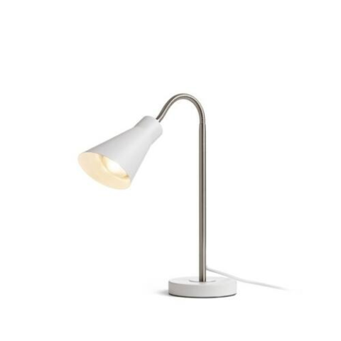 Fém asztali lámpa rugalmas nyakkal, E27-es izzóval való használatra.