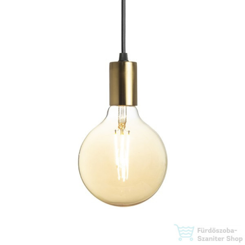 Függő lámpa sárgaréz foglalattal, fekete alapon, textil kábellel. E27-es talpú dekorációs izzóhoz alkalmas.
