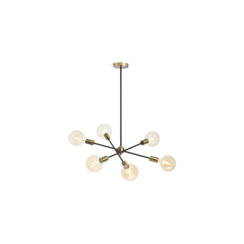 1 kép Rendl ARTEMIA 6 rúdon fekete szálcsiszolt sárgaréz 230V LED E27 6x15W