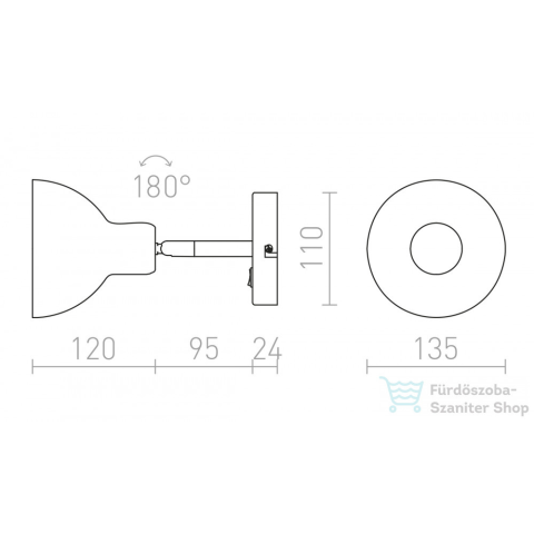 Fali lámpa széles reflektorral, kapcsolóval az alapon E27 foglalatú izzóhoz.