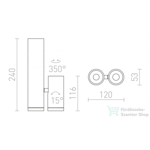 Mennyezeti lámpa, egy rögzített és egy állítható LED reflektorral.