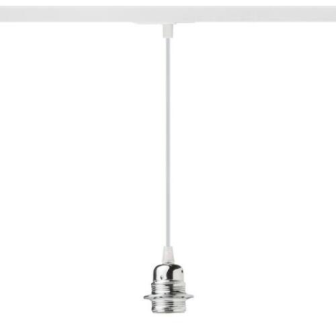 Textilkábel különböző színkombinációkban, E27 fém foglalattal, dekoratív izzó használatra. A kábelt adapter zárja le az egy áramkörű sínbe való befüggesztéshez.