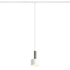 Függő lámpa lakkozott fém búrával és textil kábellel. A kábel az 1 áramkörös sávokhoz való adapterhez csatlakoztatható.