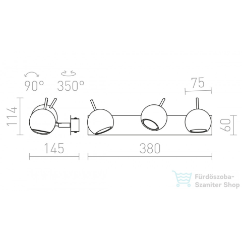 Felületre szerelhető lámpatest három reflektorral. A reflektorok két tengelyben forgathatóak.