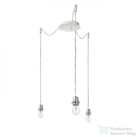 . Függesztett lámpatest központi mennyezeti alappal és különálló textil karokkal E27 fém foglalattal.A zsanérok króm mennyezeti tartókkal vannak felszerelve, amelyeket az alaptól külön-külön választott távolságra lehet elhelyezni. A kábel teljes hossza