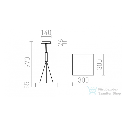 Négyzet alakú függő LED lámpatest, minimalista kerettel.