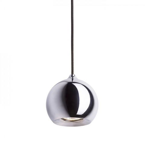 Függő lámpatest króm vagy réz búrával és mennyezeti alappal. A króm változat fekete textil kábellel van szállítva, réz verzió piros textil kábellel.
