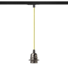 Textilkábel különböző színkombinációkban, E27 fém foglalattal, dekoratív izzó használatra. A kábelt adapter zárja le az egy áramkörű sínbe való befüggesztéshez.