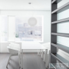 Függő lámpatest, triplex opál matt üvegbúrával, excentrikusan egy kábelre függesztve a tápegységen kívüli telepítéshez. Átlátszó kábel, króm kiegészítők.