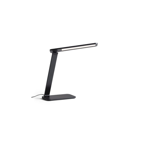 Kompakt LED asztali lámpa hosszúkás fejjel az asztallap jobb megvilágítása érdekében. A fényerősség és a szín szabályozása a talpon található. Háromfokozatú fényerőszabályozás.