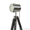 Retro állólámpa, fa háromlábú állványon, állítható reflektorral E27 foglalatú fényforráshoz.