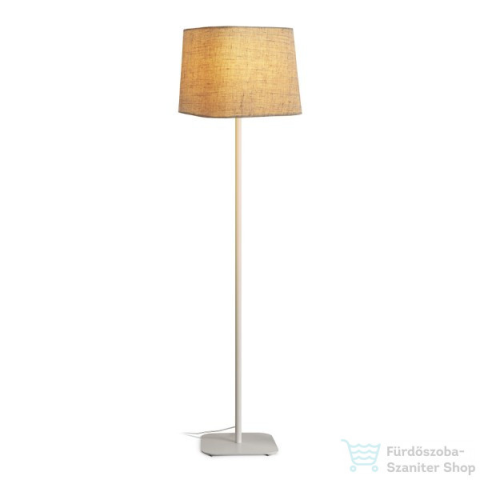 Álló lámpa négyzet alakú textil búrával és fém talppal.