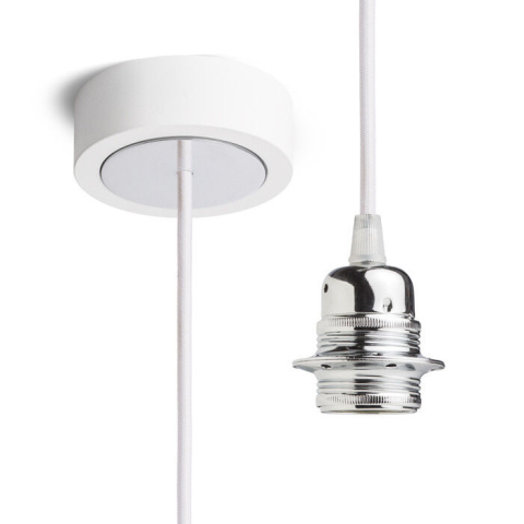 Függesztő készlet, lakkozott alumínium alappal, textil kábellel, valamint egy fém E27 foglalattal. Alkalmas önálló használatra, vagy lámpák függesztésére. Megfelelő lámpabúrák: ARISTA, DELI, JAKARANDA, DOUBLE 40/30, DOUBLE 55/30, ASPRO 40/30, RON 40/25, RON 55/30, RON 60/19, TEMPO 30/19, TEMPO 50/19.