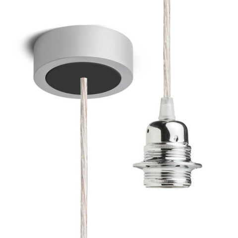 Függesztő készlet, lakkozott alumínium alappal, textil kábellel, valamint egy fém E27 foglalattal. Alkalmas önálló használatra, vagy lámpák függesztésére. Megfelelő lámpabúrák: ARISTA, DELI, JAKARANDA, DOUBLE 40/30, DOUBLE 55/30, ASPRO 40/30, RON 40/25, RON 55/30, RON 60/19, TEMPO 30/19, TEMPO 50/19.