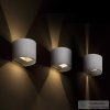 Falra szerelhető kerek LED lámpatest fel/le világítással és a fénysugár beállításának lehetőségével. TRIAC dimmelés.